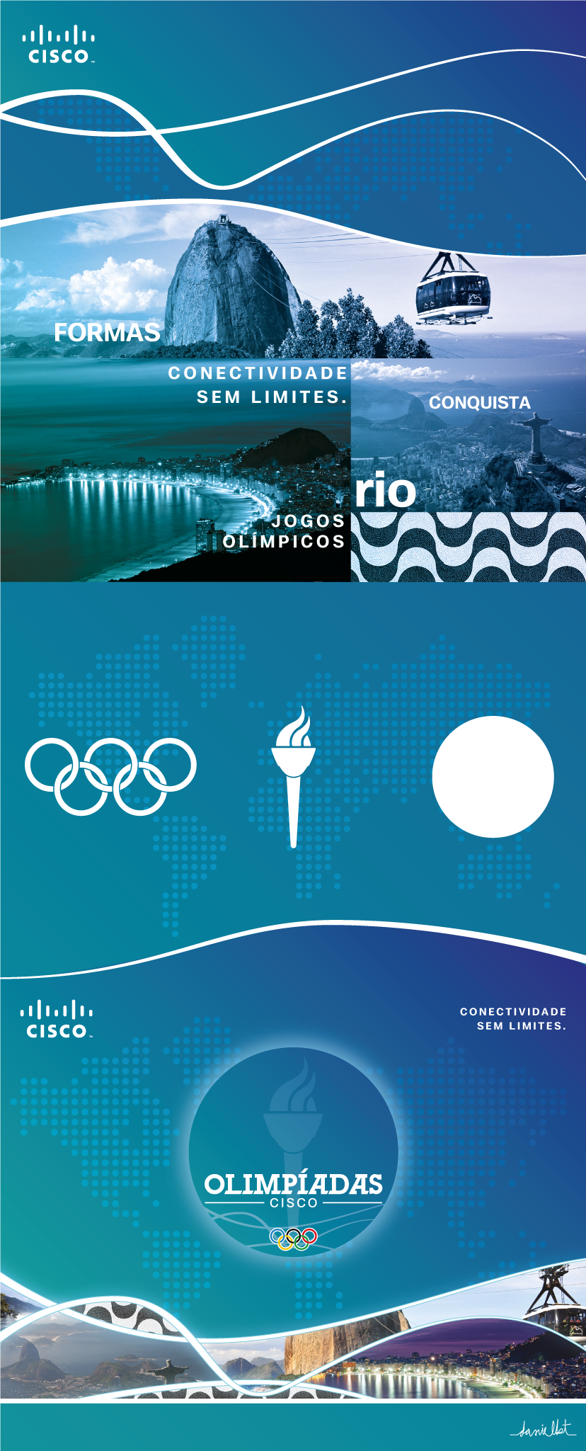 Key Visual e desdobramentos para a campanha interna de incentivo da filial da Cisco no Brasil, apoiadora oficial dos Jogos Olímpicos Rio 2016.